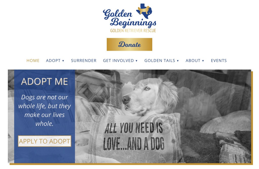 Golden Beginnings Posted on January 28, 2021 by dhhen1 | Leave a comment What a great group of folks. We’ve adopted two Goldens from them and helped with three rescues so far. Soon, we hope, we will be welcoming another Golden from them into our family. https://gbgrr.org/ Share this: Click to print (Opens in new window) Print Click to share on Facebook (Opens in new window) Facebook Click to share on X (Opens in new window) X Click to email a link to a friend (Opens in new window) Email Like Loading...